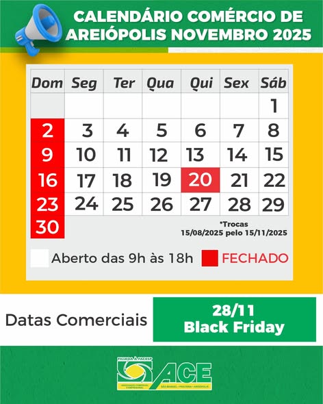 A ACESM lembra que este é o momento ideal para planejar ações, promoções e campanhas especiais. Novembro traz datas que movimentam o varejo, como a Black Friday e o início do aquecimento para o Natal.
